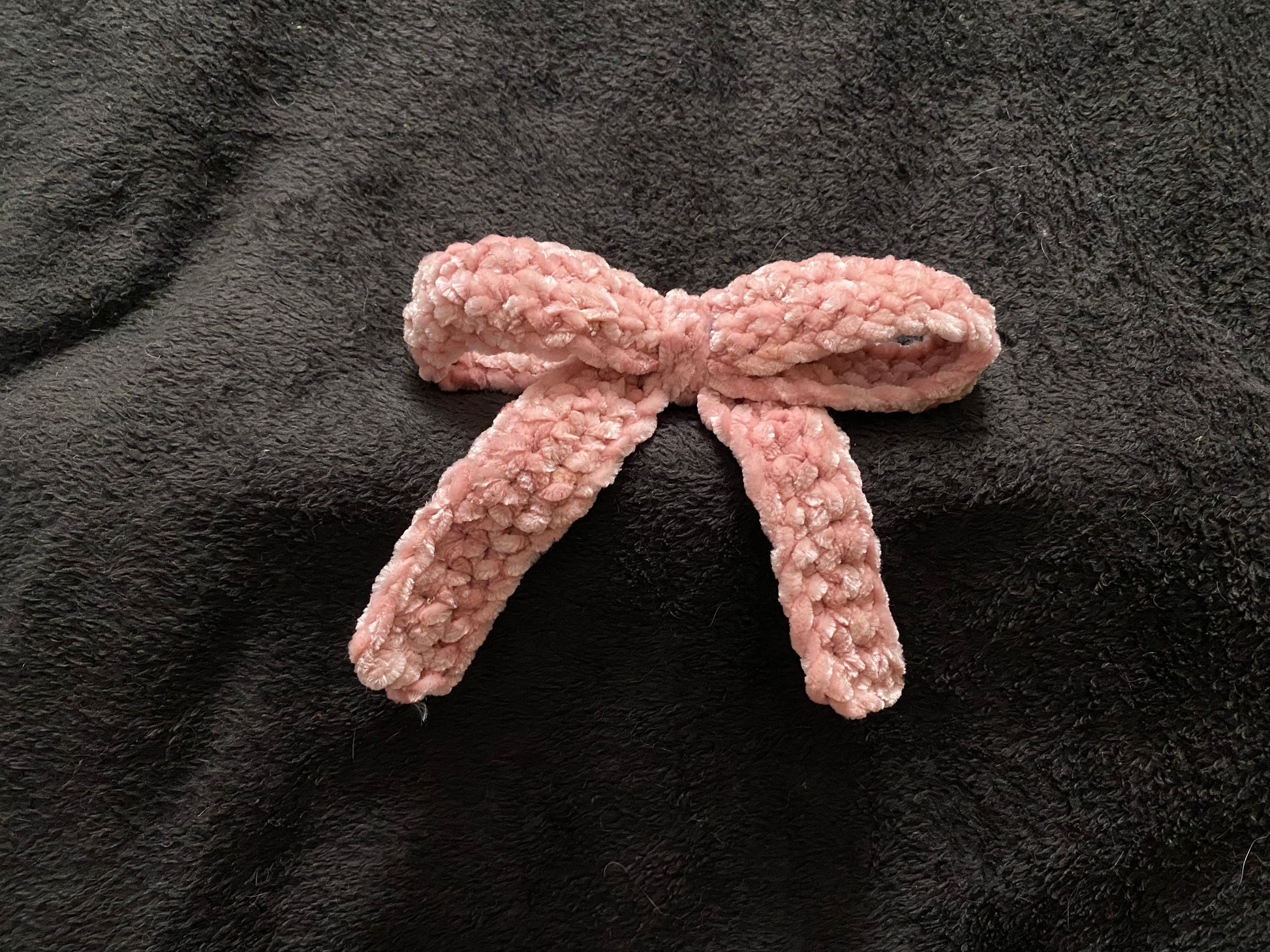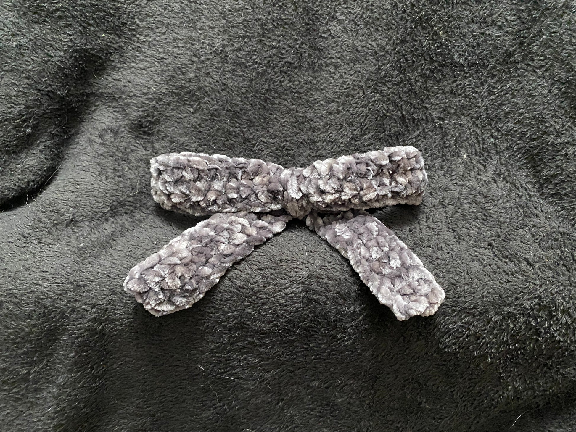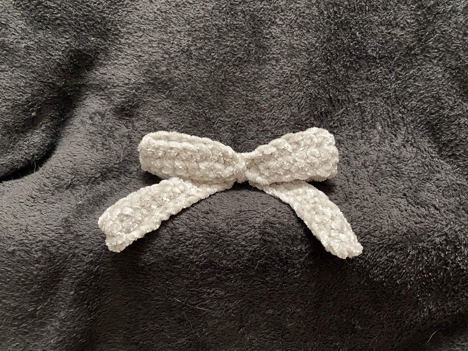 Crochet hair bows made with velvet material and a French barrette on the back. Colors listed are currently available.